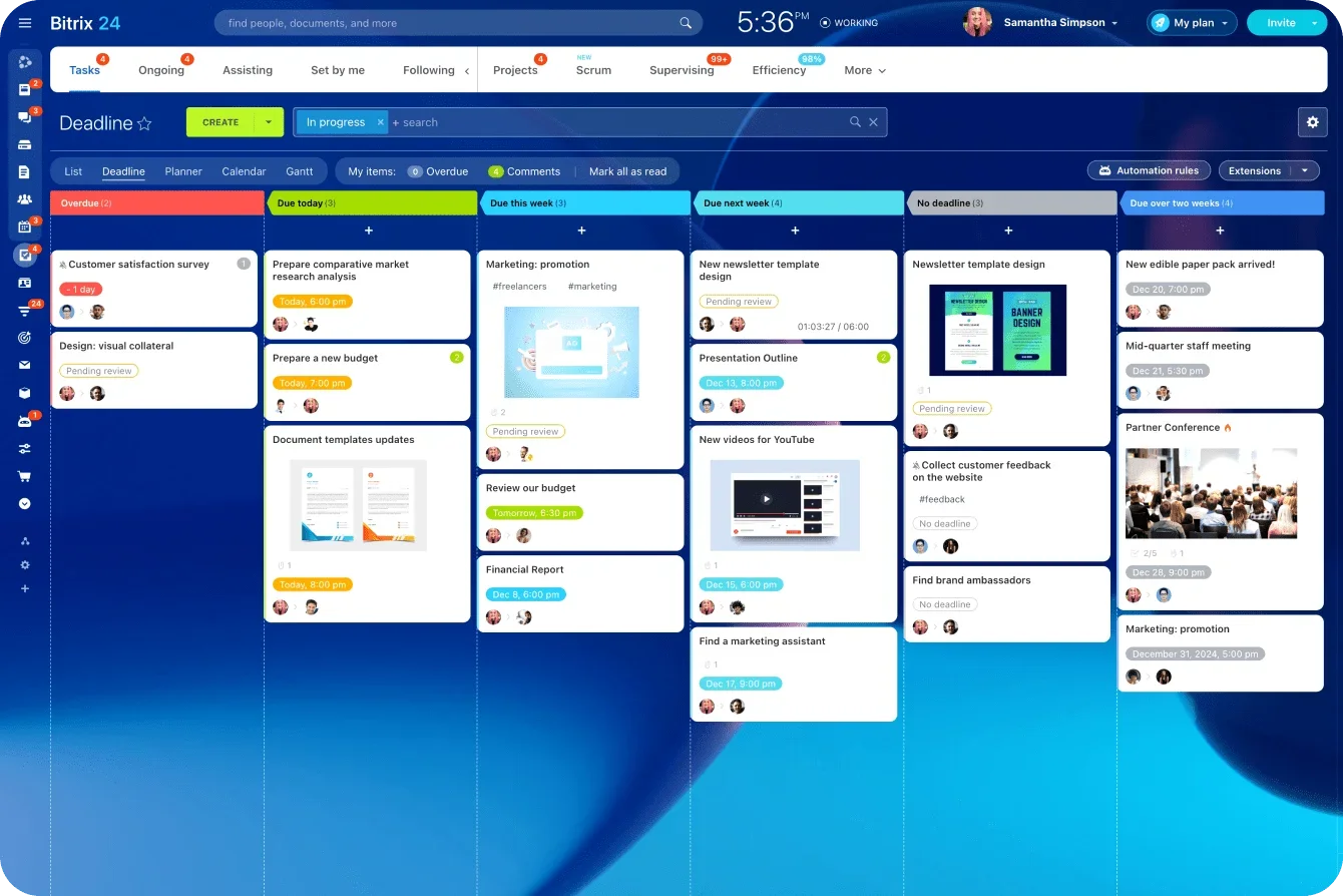 User-Friendly Design: Bitrix24 offers an intuitive interface that is easy to navigate, even for beginners. The dashboard is customizable, allowing users to tailor it to their needs and preferences.