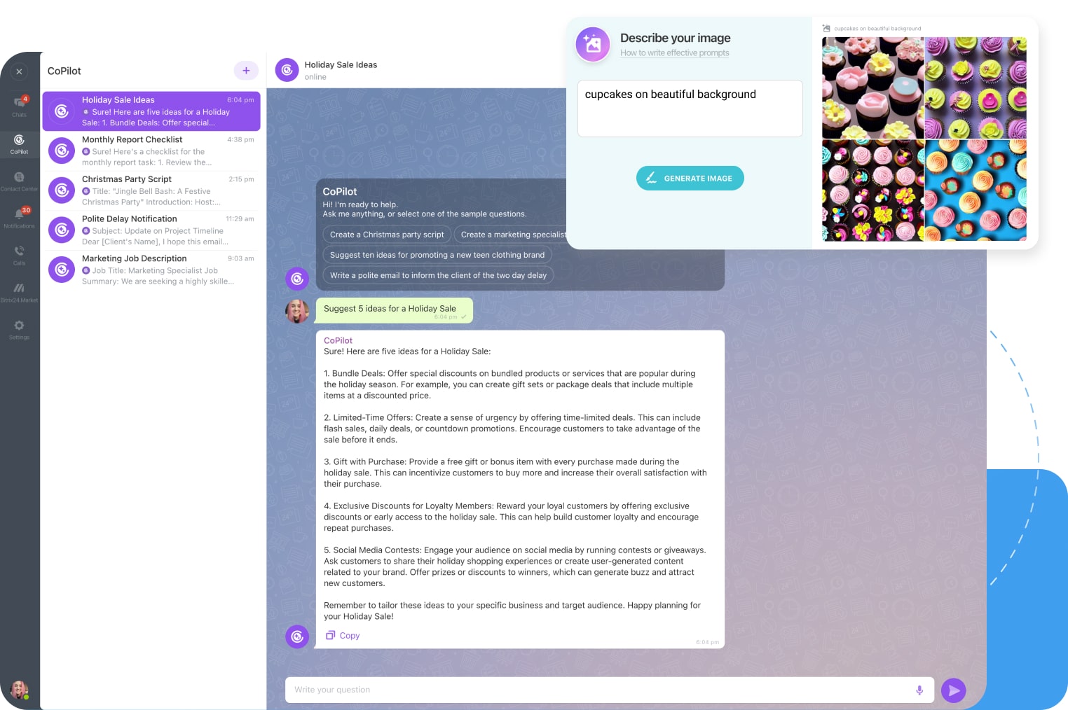 Use our AI-powered assistant CoPilot to create ideas, write announcements, generate summaries, reply to comments, and more.